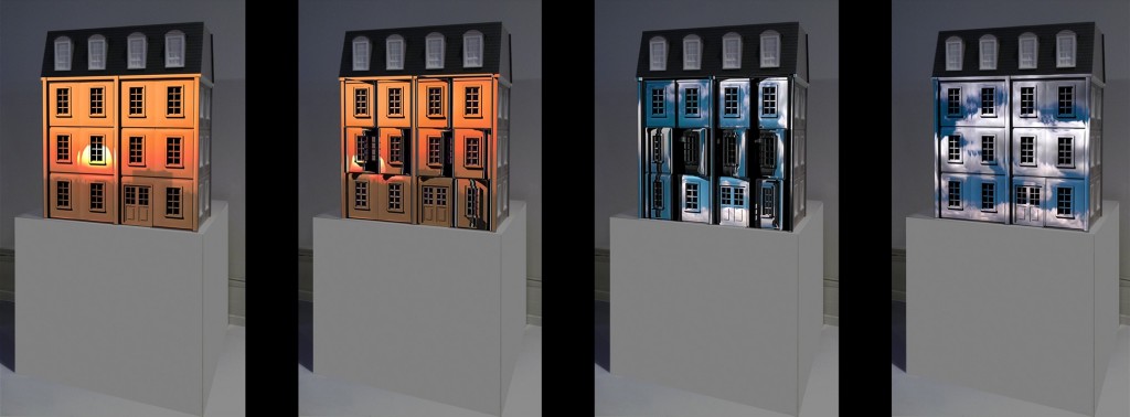 By simulating a reflecting facade, reflections of different environments move the building and the viewer through different environments.